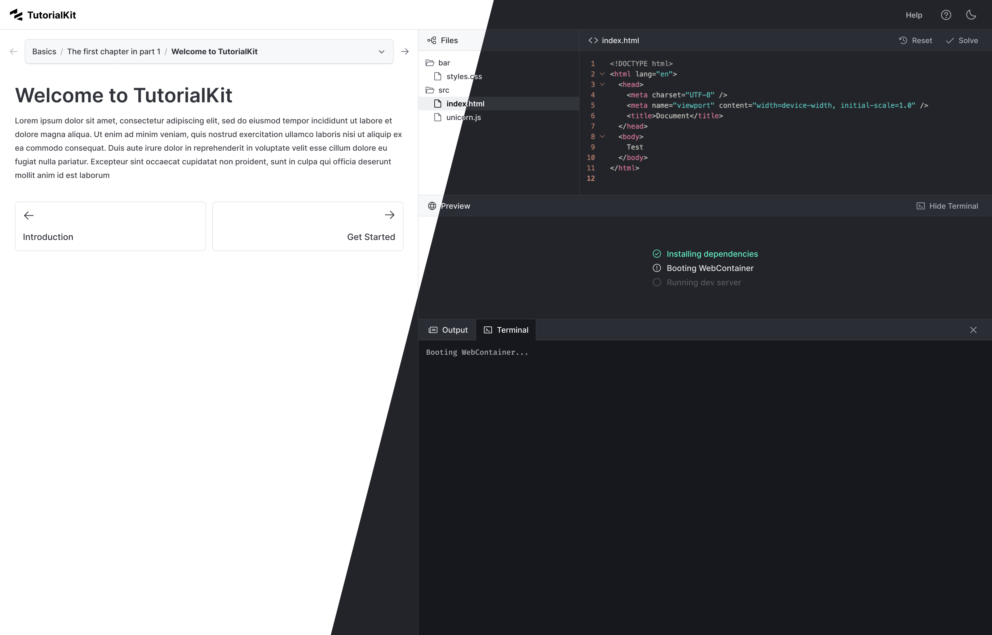 TutorialKit by StackBlitz enables you to create interactive coding tutorials effortlessly, boosting the adoption of your framework, UI library or design system.
